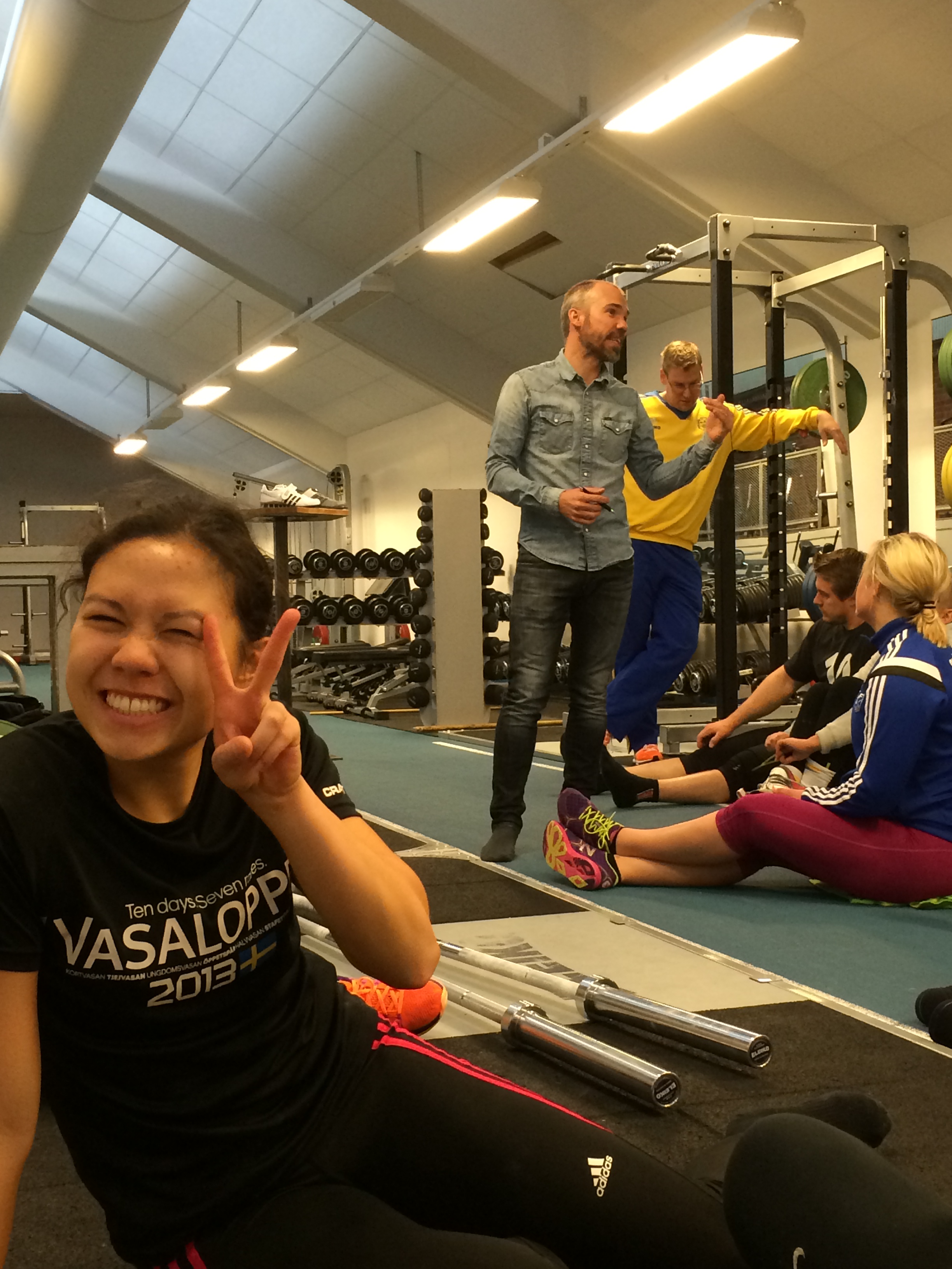 Nu är vi redan inne på tredje dagen på lägret. Det går alltid så fort när man är iväg på träningsläger. Gårdagen var helt fullspäckad, allt gick i princip i ett. På förmiddagen gjorde jag och Carita gjorde lite kompletterande tester, vilka var hopp och gripen (ett instrument som mäter handstyrkan). Jag gjorde lite sämre än vad jag gjort tidigare men det var ändå helt ok. Under förmiddagspasset var även Jonas Tistelgren från Kamisport Adidas där och visade upp kommande kollektion för tyngdlyftning. Vi diskuterade och fick även vara med och ge våra synpunkter på hur framtida produkter ska se ut, bland annat vad vi tycker är viktigt och bra med en lyftarsko.