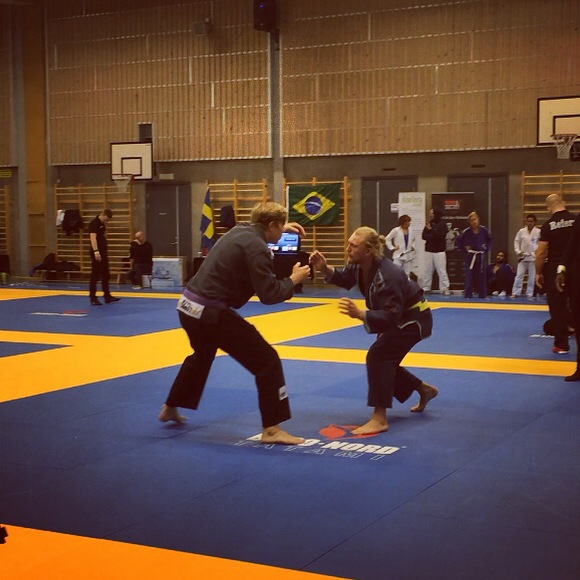 Då är jag på väg hem för att mellanlanda i några dagar. Tidigt i morse cyklade jag och Max från hans boende i Linköping för att möta upp ett gäng taggade killar från den klubb han tränar BJJ. Trots att jag och Max har varit tillsammans i drygt tre år har jag aldrig sett honom tävla i verkligheten. Jag har bara sett klipp från olika matcher. I samband med att han började sin utbildning fick han lägga sin mma-satsning på hyllan och detta var precis innan vi träffades. Nu har han börjat träna lite BJJ och blev sugen på att tävla. Jag tycker verkligen det är superkul och blir i princip lika taggad som han. Efter att ha suttit och tittat på matcher hela dagen (och ändå förstår jag knappt vad man får poäng för och inte) blev jag också sjukt tävlingssugen. Det känns som om det inte spelar något större roll vilken sport jag tittar på, jag blir alltid lika sugen på att tävla själv. Kanske längtar jag lite extra efter tävlingskänslan då SM i början av juli var min senaste tävling.