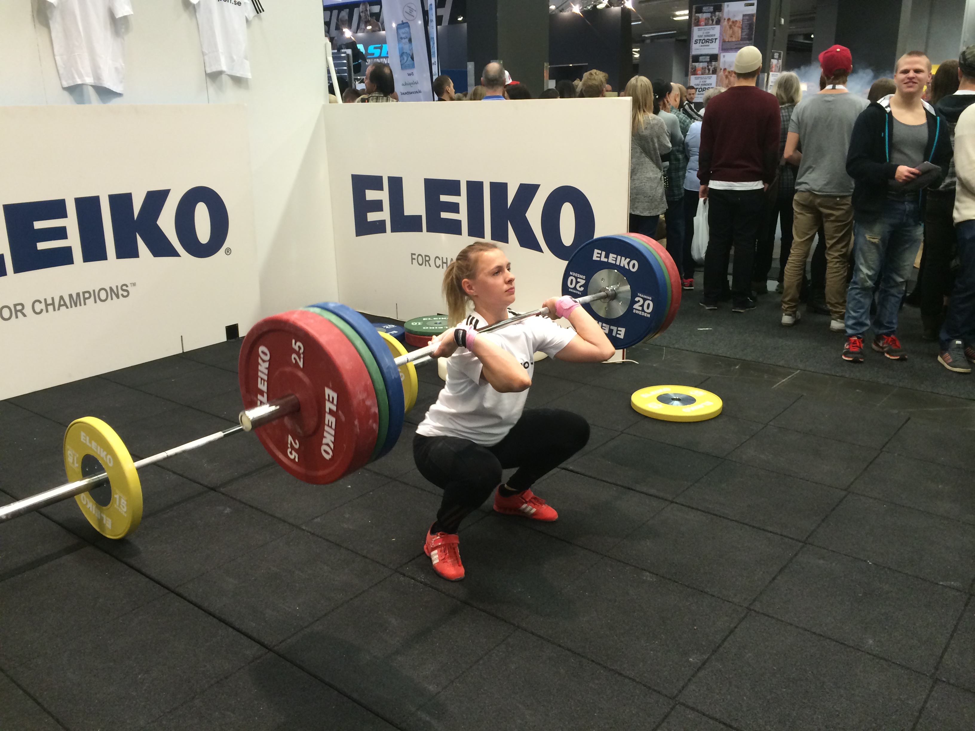 Det har varit fullt ös, från början till slut. Vi har tränat, massa folk har lyft, det har varit tävlingar, utdelning av vinster och massa skratt. Vi kommer att ha en utmaning imorgon igen, så ni som är sugna på att vinna ett presentkort från Adidas, sväng förbi vår monter.