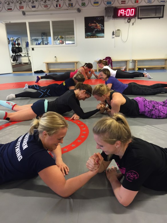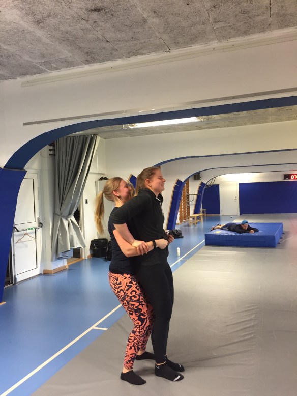 Mellan lyftarpassen körde vi nämligen lite brottning som några av världens allra bästa brottare Jenny, Sofia och Henna höll i. De tjejerna är riktigt coola och så bra! Och gud vad roligt vi hade. Vi körde allt från lite lek, typ spökboll, till ”gymnastik”, armbrytning och ”brottning”. Eftersom alla som är med här är riktiga tävlingsmänniskor så gick vi alla verkligen all in i allt vi gjorde. Det var verkligen huuuur roligt som helst. Tusen tack bästa brottare för att ni gjorde det här för oss! 😊