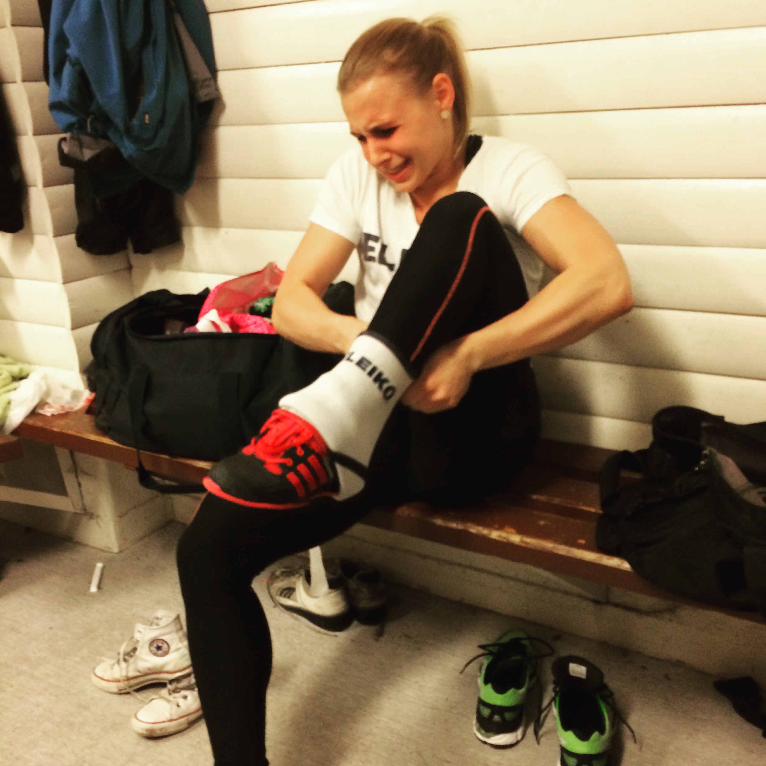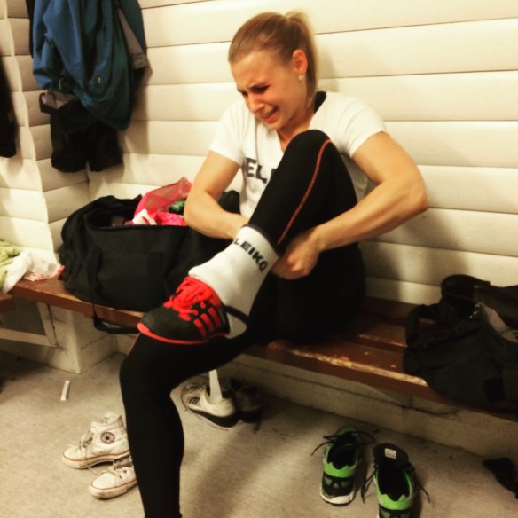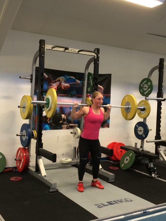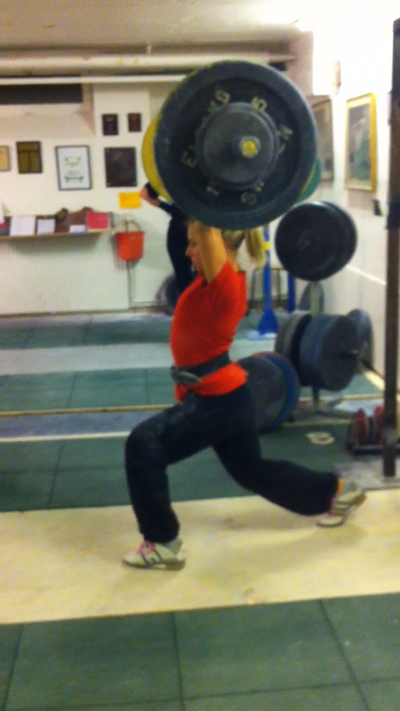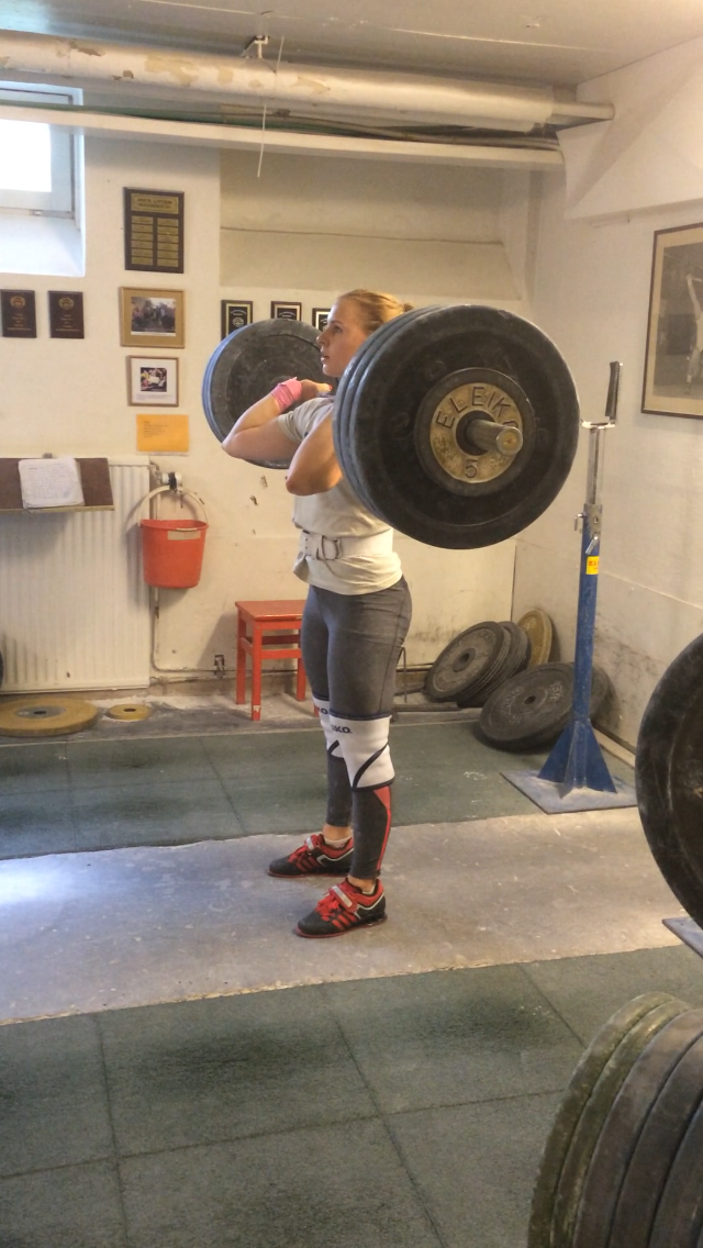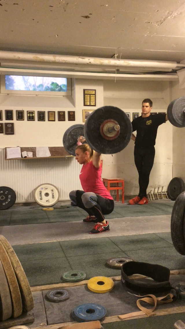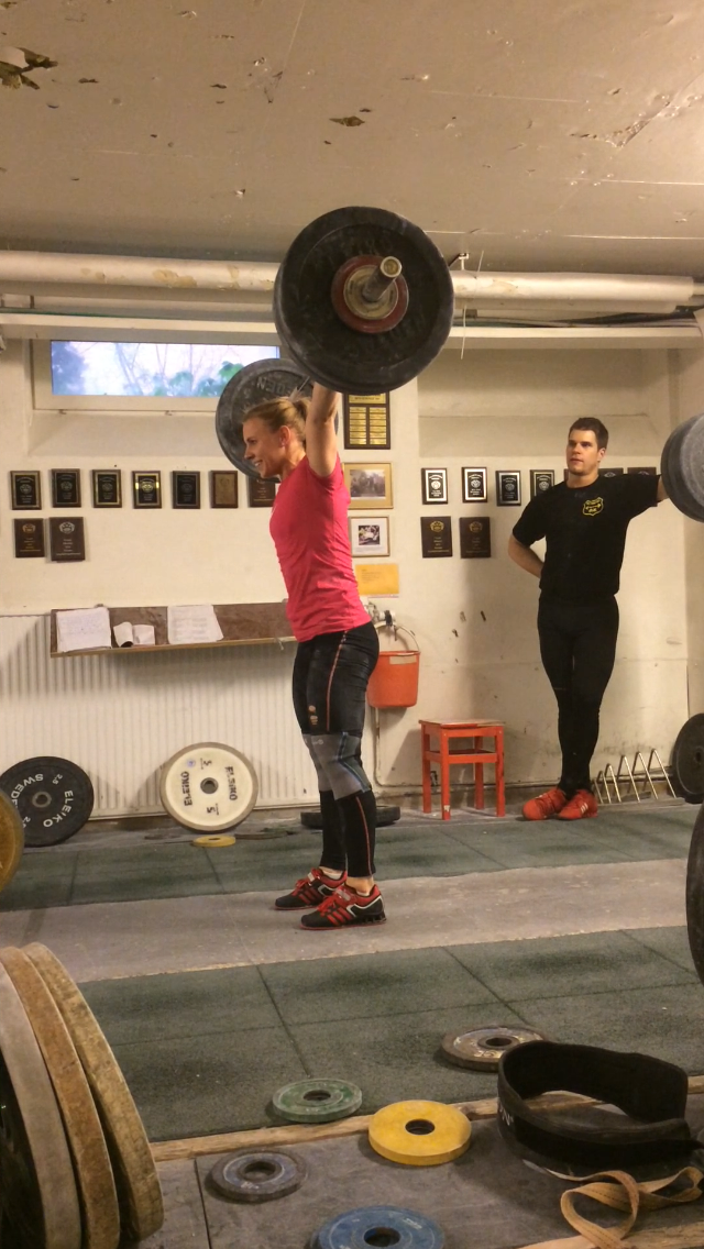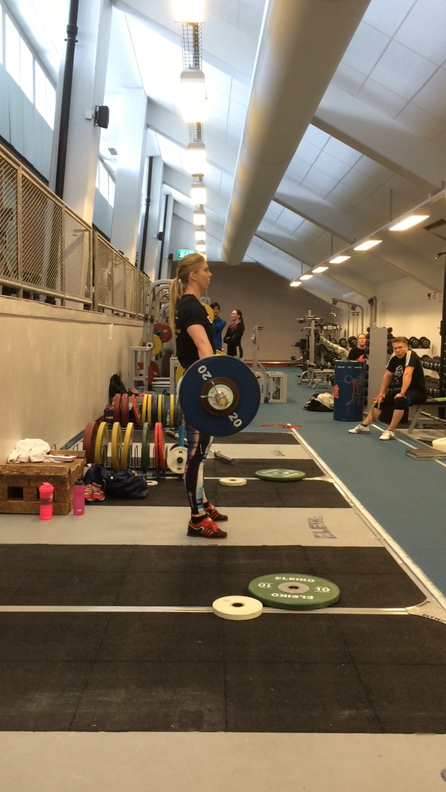Ibland, väldigt sällan faktiskt som tur är, låser det sig helt. Det är liksom som om huvudet glömmer meddela resten av kroppen vad den ska göra. Jag tycker verkligen att det är en så sjukt konstig känsla. Igår hade jag stöt från ställ. Jag skulle köra några singlar på 103 kg, vilket är en vikt som det senaste har känts som en ”vikt jag tar i sömnen”. Dom två första var bra. Sen kom den där låsningen, total blackout. I överstöt liksom. Där jag brukar vara säker och ha koll. Så här kan det i alla fall se ut när man gör en satsning, börjar göra stöten men ångrar sig.